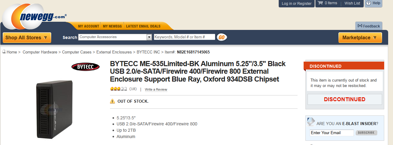 I have a Internal LG Bluray SATA for which i need a 5.25" Enclosure that will take the Sata connection and Give me Firewire so that i can connect to my Notebook from 2007 which has a Firewire connection
