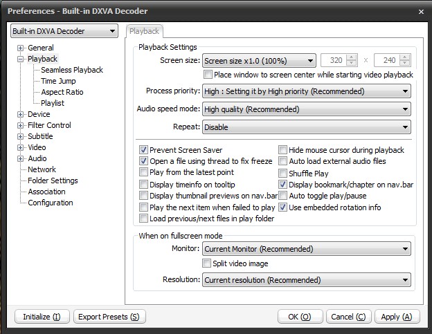 BTW way I have potplayer not changing windows size at the moment, unless I go full screen. (Playback > Screen Size > Default Screen size and General > Startup > Custom Size and position)