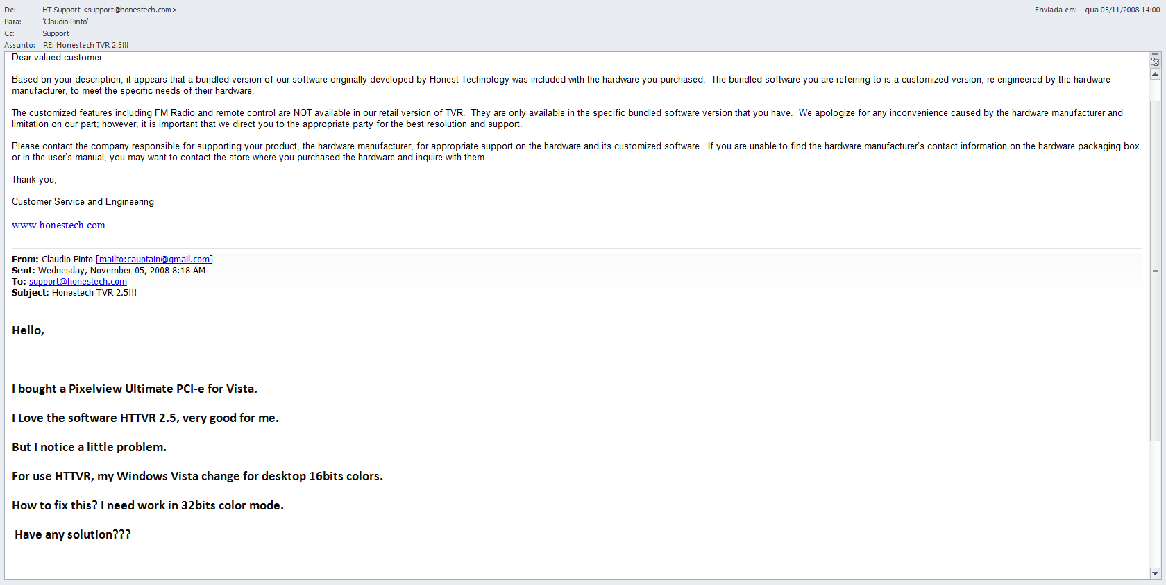 It is hard to believe Honestech is foolish enough to permit a third party to use the "Honestech" name like that, because it forces Honestech to turn away customers coming to them for support and those customers will feel resentment towards Honestech, after seeing Honestech's name and website plastered all over the product.