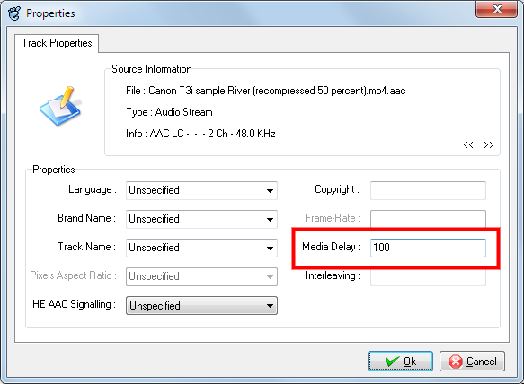 So I've run into some problems again. I've gotten a hang of using MP4 Muxer in MeGUI. I now have a .264 video file and an .ac3 file which I need to mux together to an MP4 file. Thing is, when I do, this there is a slight audio offset. I'd need to offset/delay the audio with 100ms.