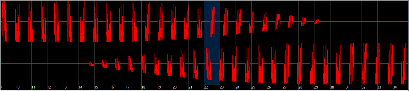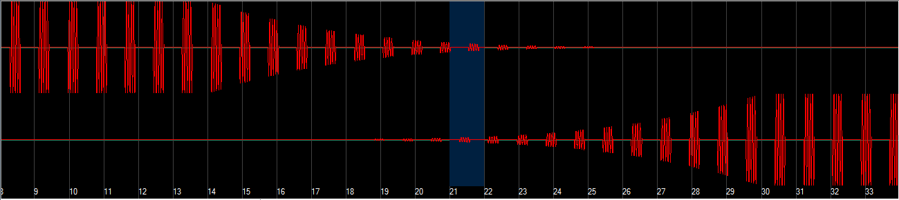 Instead of the burst simply decreasing or increasing in amplitude you can see the overlap. With a proper linear audio crossfade you get the expected: