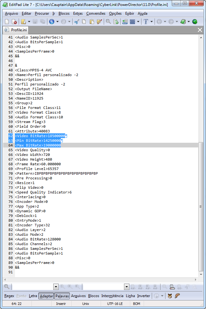 "C:\Users\your user here\AppData\Roaming\CyberLink\PowerDirector\10.0\profile.ini"