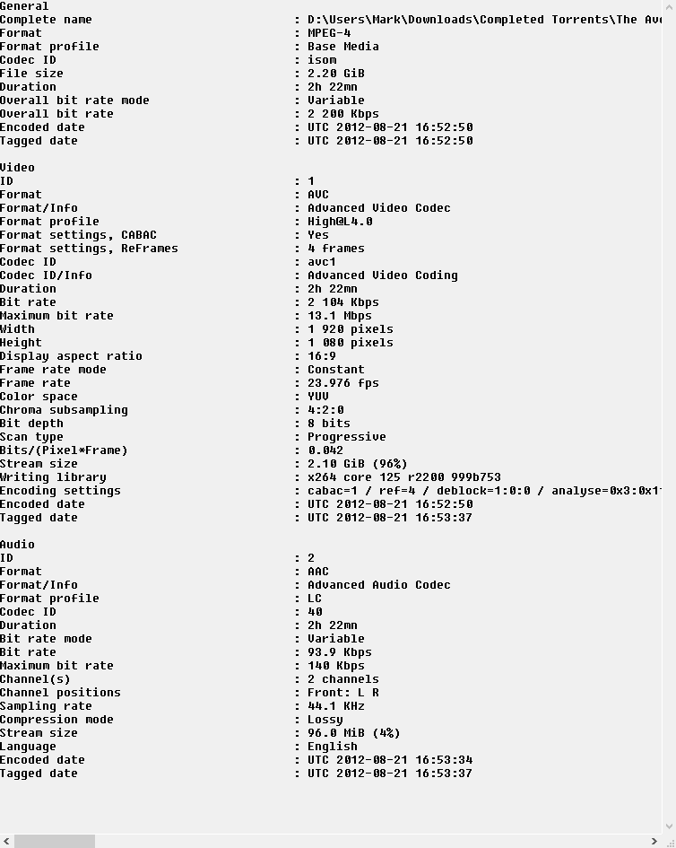 I found a really beautiful version of the Avengers that is in MP4 format at 2.2GB. When I look at the details of the file, the specs don't look too good. But when I play it, the picture is absolutely gorgeous.
