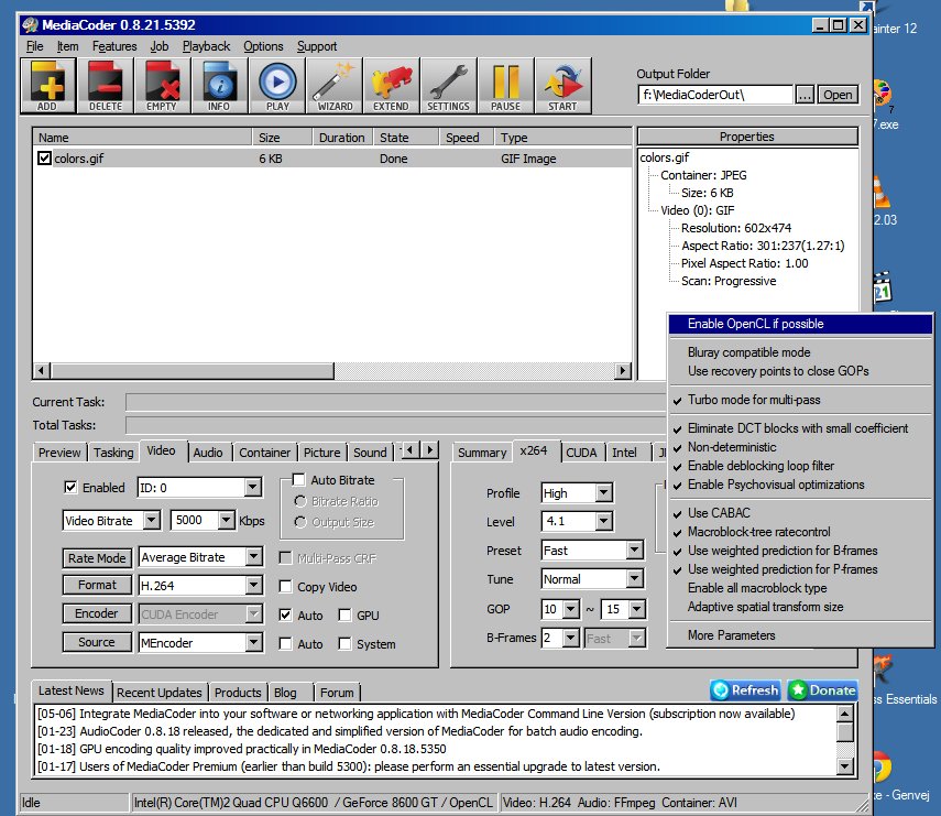 This version of mediacoder is much more slower when transcoding, either CPU only or OpenCL enabled, this is strange...
