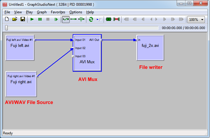 3) Add two instances of AVI/WAV File Source (it will ask for the file names for each).