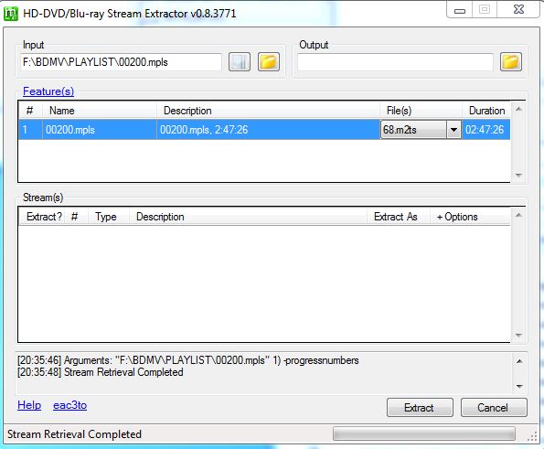 I have tried to use BD Stream Extractor as suggested early in this post, but it gives me NO streams at all, it just indicates: