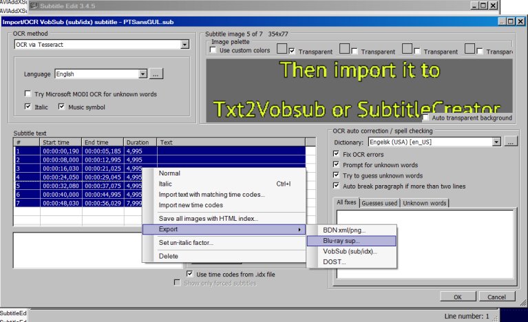 For that you'll need BDSup2Sub (You can do it in Subtitle Edit. When you import an image based subtitle it'll open an OCR window. Selecting (mark) the subtitles you can right click and export)I still do not understand how to make Bluray subs to DVD and reverse.