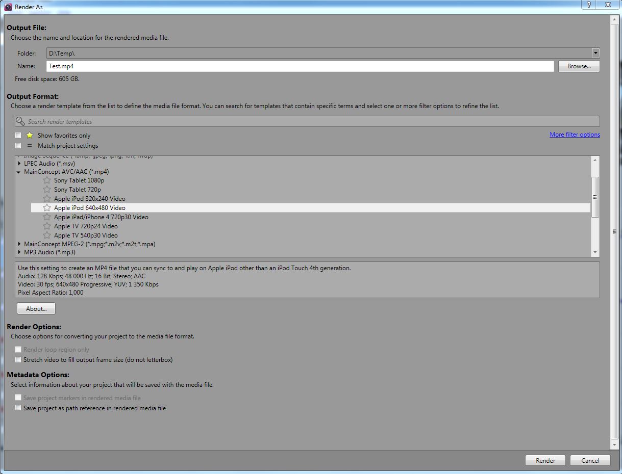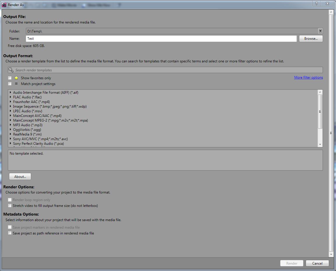 I've downloaded the trial version of VMS 11 and managed to accomplish what I wanted to but now I have the most stupid problem...I don't know how to save (or render as Sony likes to call it) the output file. There are lots of preset profiles to choose from but I was hoping to find something familiar like xvid where I will end up with a reasonable filesize but what I've tried so far from the render templates available no luck...