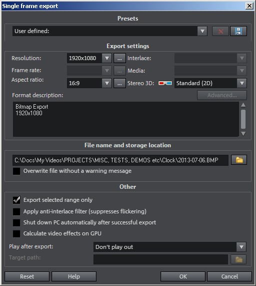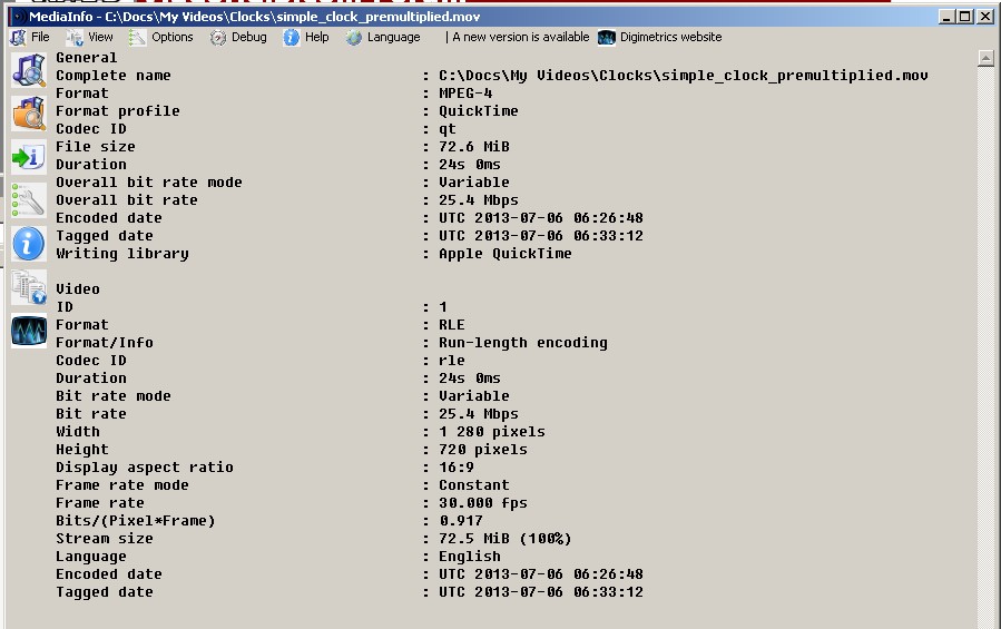 Well, if I'm still following correctly, both those formats you've most recently sent happily do cut the mustard, yes? If so, I'm looking forward to the full video. Preferably in black on white; now that I've seen it the black clock face while admirably readable does looks a bit grim, don't you think?You just have to find a compatible format that MEP understands - so post the mediainfo report of one that works, and I can export it in that format , or someone can make a better, more customized fancy clock. I suspect uncompressed AVI will work