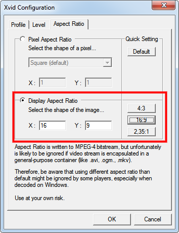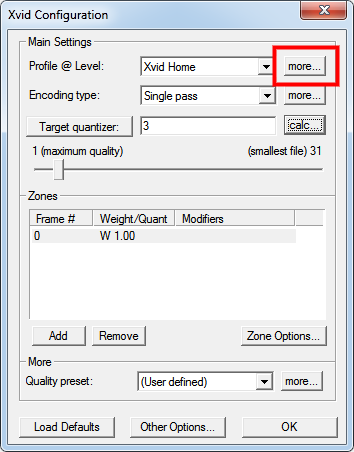 Does the program give you access to Xvid's configuration dialogs? If so, clock on the "more" button indicated: