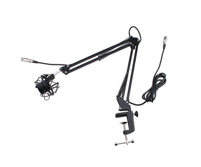 Microphones are also prone to amplify any vibration to which they're subjected. How much depends on the design. For a mic you'd hold in your hand it's often referred to as "handling noise". You'd pretty much hope, looking at the design of the mic, it could sit on a desk and not be bothered by mouse clicking or typing in terms of amplifying vibrations through the desk. Assuming of course it comes with the stand in the picture on the page I linked to.