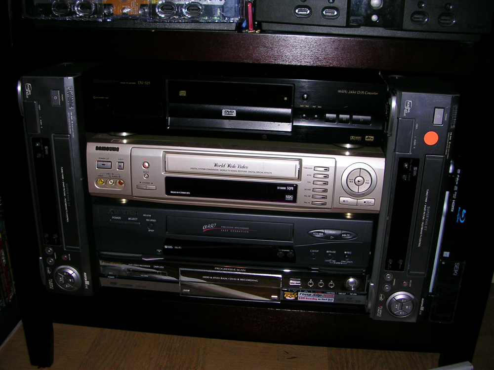 I would be dubious about vcrs being stored vertically. Since there are more moving parts in a vcr than a dvd player something might get out of alignment or the heads might get warped or something. Again I'm no engineer just a feeling on that one.