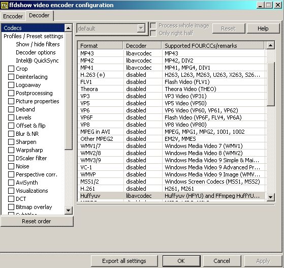 but the mystery happens when I disable both ffdshow and lav decoder, and I can now still load huffyuv videos into virtualdub successfully.