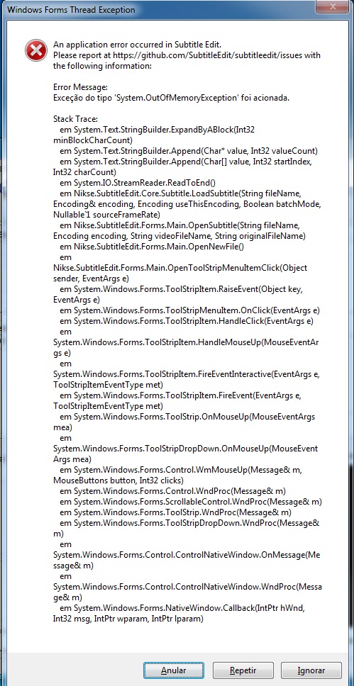 There's something wrong with your file, or at least there's something wrong with SubtitleEdits ability to detect it.