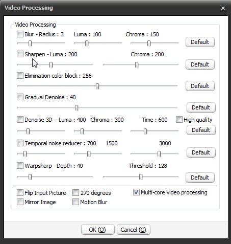 Budman1 - Yeah its got a great amount of features and tweaks. the new Coreavc codec is great to. But I cant actually find a sharpness setting?
