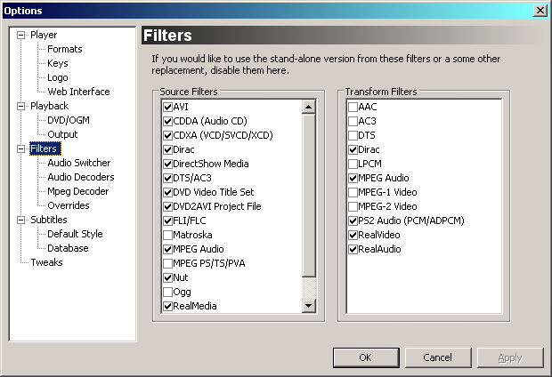 PS. The "external filters" menu we're familiar with is still there in the version of MPC above, but apparently at some stage it was called "overrides" instead. I don't remember that, but obviously it happened....