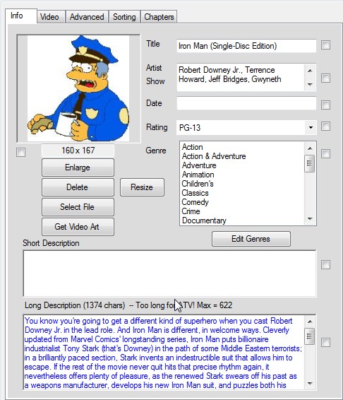 And no this is not an illegal IronMan copy. It was a short MP4 segment that I worked with the author because after editing certain MP4's, they would not play without using a hex editor to correct. Hence the Cover art character.