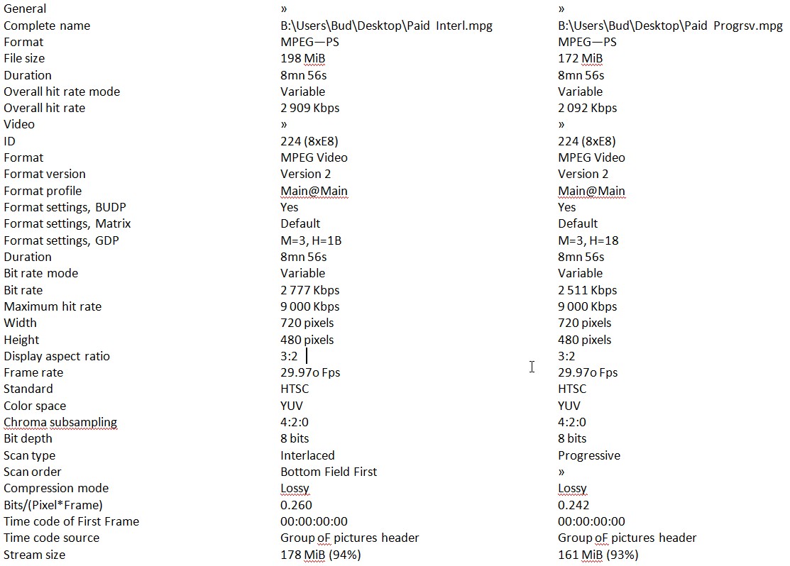 DarrellS, Thanks for the better quality format script. I added it to my VDPROFs and reposted it at https://files.secureserver.net/0sou9GKxPLkcGw. I didn't see too much difference but it did correct my aspect settings. Also this will allow a Progressive (Yours) and an Interlaced version (Mine) in case users want to choose. The output is shown below for: