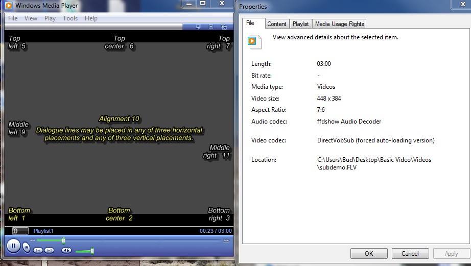 Right clicking WMP while playing and selecting properties shows the DirectVOBSub as the automatic Video codec.: