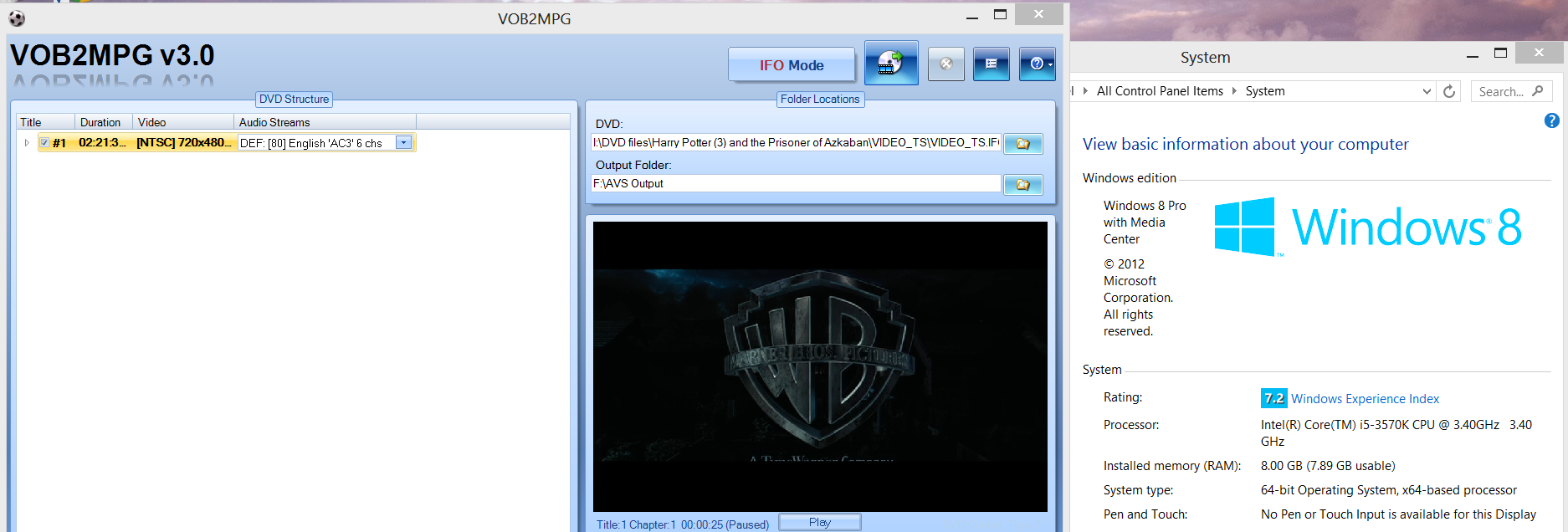 Has anyone gotten VOB2MPG to work in windows 8? I have installed .net 2.0 but still receive an error when launching the application. I have even tried Windows Compatibility mode with no luck. I love this program and would love to see a work around or updated version.