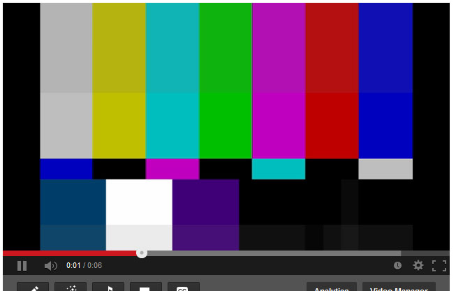 I encoded a suitable testcard using x264 and uploaded it to YouTube...
