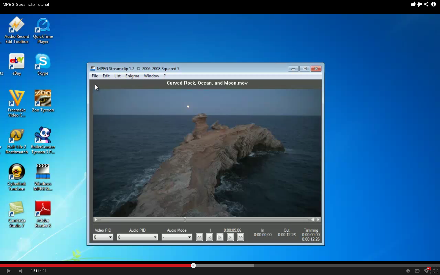 OK this is also from youtube. The lighter grey bar above video/audio PID isn't on mine. That's what I was referring to as the timeline. I want something to just trim the mpegs that I have. Not reincode them. I though Mpeg Streamclip does that. -
