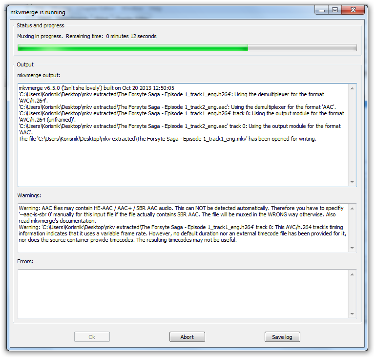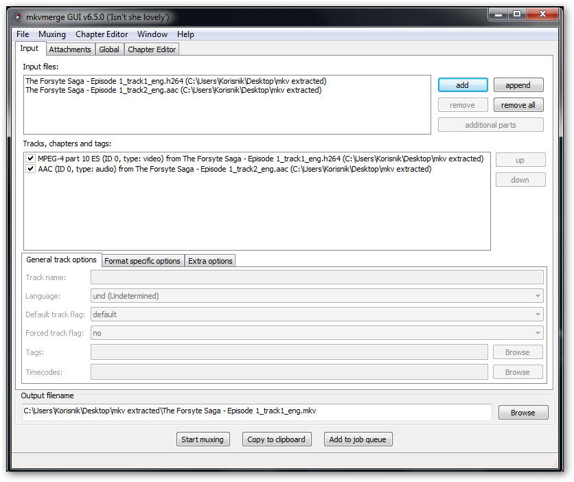 I have a problem with merging video and sound files back to mkv. I have a file that has Dutch subtitle in it that I wanted to get rid of. This subtitle is the same as in DVD. So I opened the file in MKV extract and chose to extract only video and sound. It extracted fine. However, when I mux them back together without subs, the file won't play, and when I click on it to play, the file's speed is very quick and it lasts only for 10 seconds or so. Also, sometimes it won't play at all, because all the frames are frozen. I realize it has to do something with the absence of that subtitle, but I don't know how to proceed. Can someone please help?