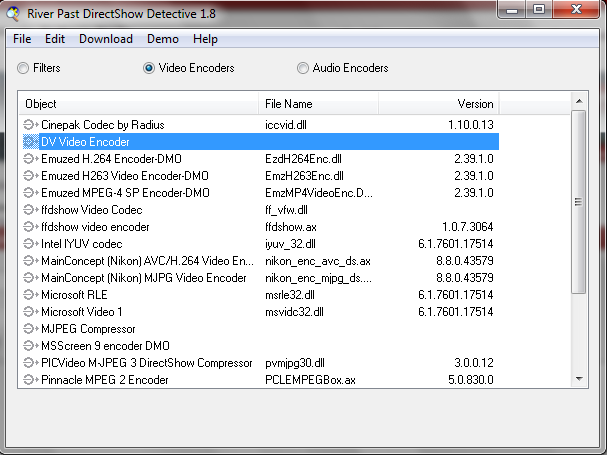 OK downloaded the River Past DirectShow detective and found out that I have the same problem, but the regsvr32 qdv.dll fix gives me a message that the .dll has been registered successfully, but after I restart the DirectShow detective the situation is the same, of course I tried rebooting the PC.