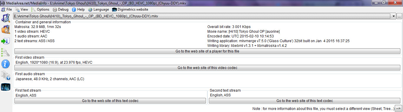 By the way: VideoHelp downloads of MediaInfo will offer you the GUI version (you will find the letters "GUI" in the filename of the archives you download there). The one with a window, where you can click with a mouse arrow. (CLI would be the one where you have to type commands in a console, grey on black, you know...)