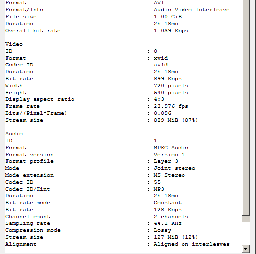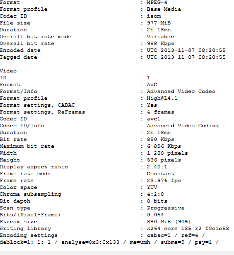 Here is the info of the video file "after" conversion: