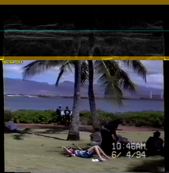 On the left is the video without TBC/NR, on the right is the video with TBC/NR. Notice how there is more detail visible on the left image (it's not very interesting detail in this particular image but it might be in other images). That's because the dark detail was "crushed" by the TBC/NR.