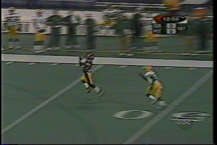 I took a frame from a small clip from a (North American) football game in a fast, and panning, scene. Forgive the quality, the tape has been recorded, re-recorded, and abused, dozens of times, but hopefully it helps.