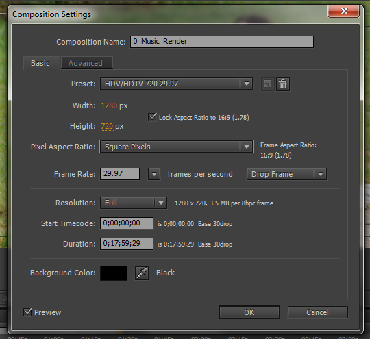 My composition settings in after effects are as follows: