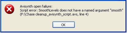 Hunted down what Avisynth wiki says is needed for SmoothLevels, getting this error: