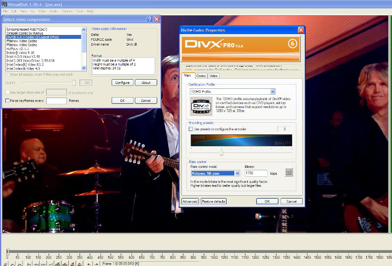 on a second XP install. I currently encoding a short music video, 1080p source, 25 fps, at 1750 kbps 720p,