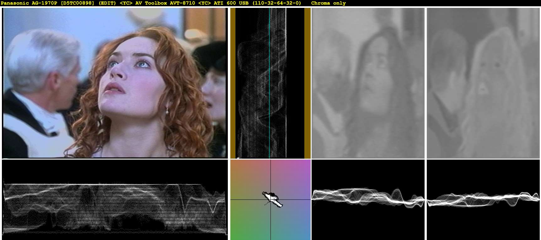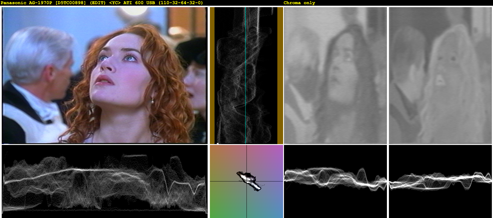 I started with all of its internal proc amp controls reset, and then did brightness -1 and contrast -7 steps in an attempt to recover the levels. As you can see, this failed: