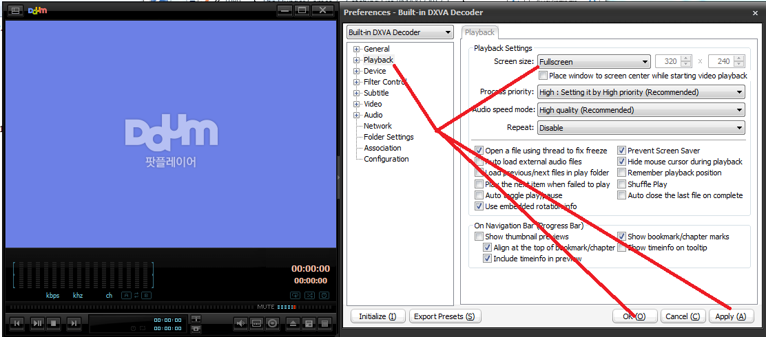 How can I make Pot Player launch in the full screen mode when I open it? Can't figure that out. I always get the mini screen in the corner no matter what I do.Windows 8.1 Pro 64 bit with Media Center.