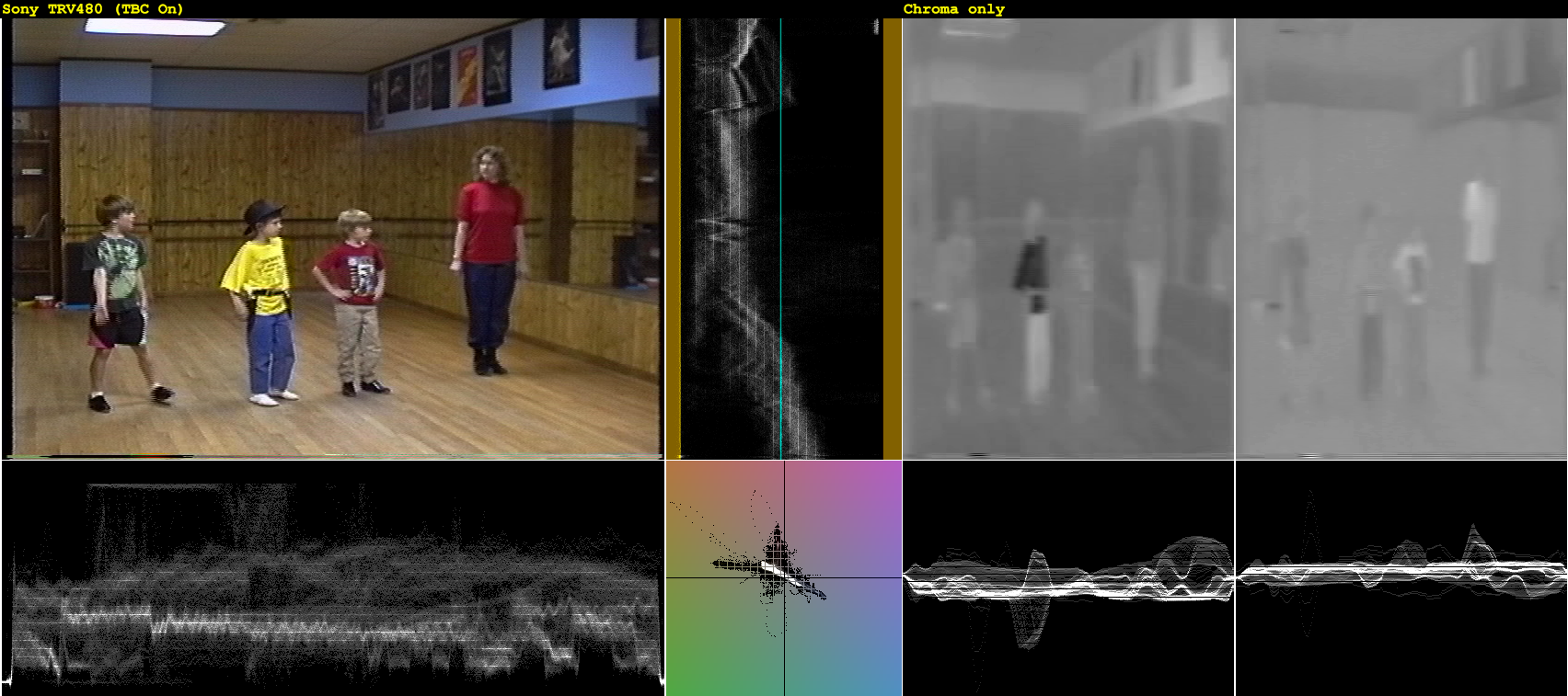 A lot of my hi8 tapes are of HS bands where the uniform colors are red/white or red/blue and recitals with bright costumes on stage in dark auditoriums. The couple that I looked at are like the TapPractice with significant color bleeds. I'm not sure if the bleed is all/partially caused by the camcorder and actually on the tape (player doesn't matter) or it's the TRV480. When searching for how to handle hi8 bleeds, ran across a 2006 thread that I had read months ago, Capturing Video8 and Hi8 - guides. There swiego is comparing his Digital8 camcorder with a hi8 deck, EV-S7000, connected with s-video to a 550 (coincidence?). In post #13, he says:A quick look at amazon & ebay suggest that particular deck is really expensive, but there are some EV-S5000 that might be available for < $200. Don't know spec differences yet. Wonder if a deck would even be worth looking into?Digital8 (camcorder) vs. Hi8 Deck: