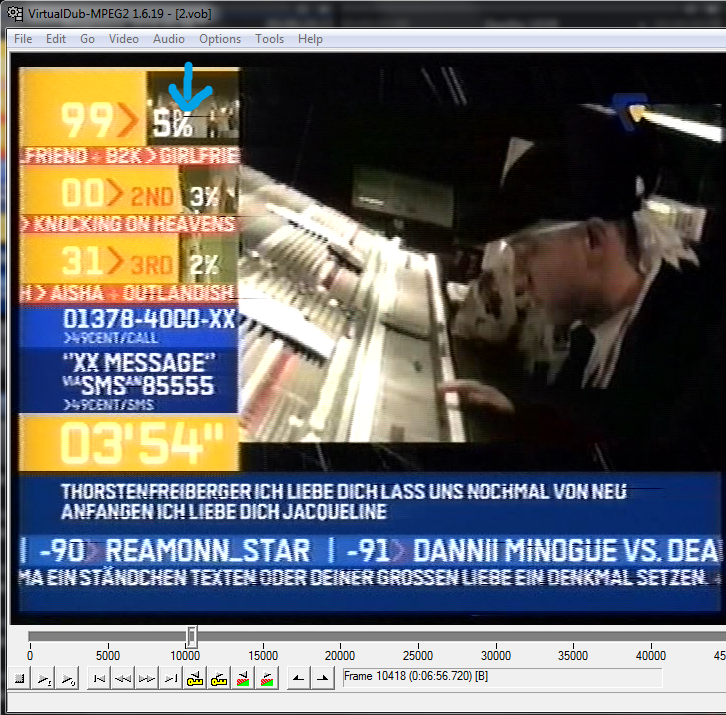 Now it worked. The "still standing" texts are angled as I use the dublicate Filed in VirtualDub.
