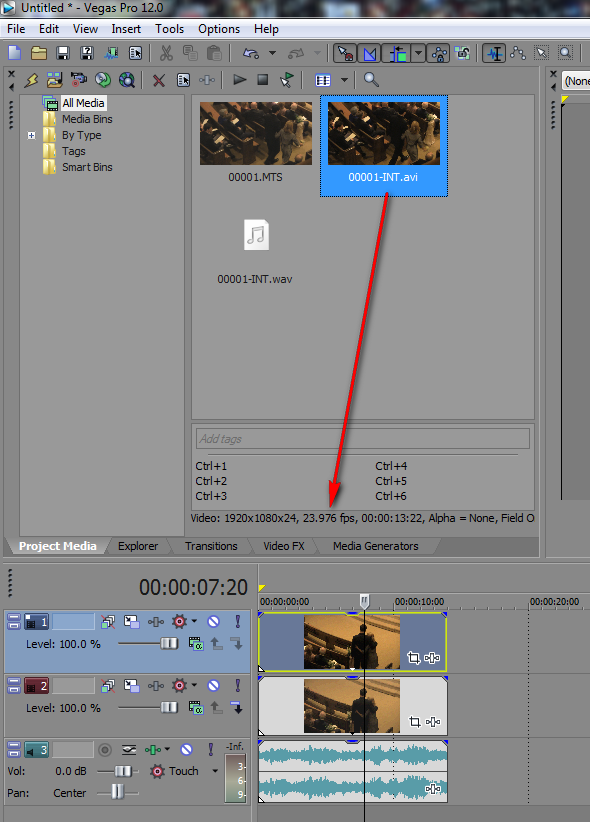 For Vegas, project settings are one of the bluray templates - HD 1080-24p (1920x1080, 23.976 fps). It's a mixed media project, most of the footage is true 24p.Interesting. What timeline/project settings ? -
