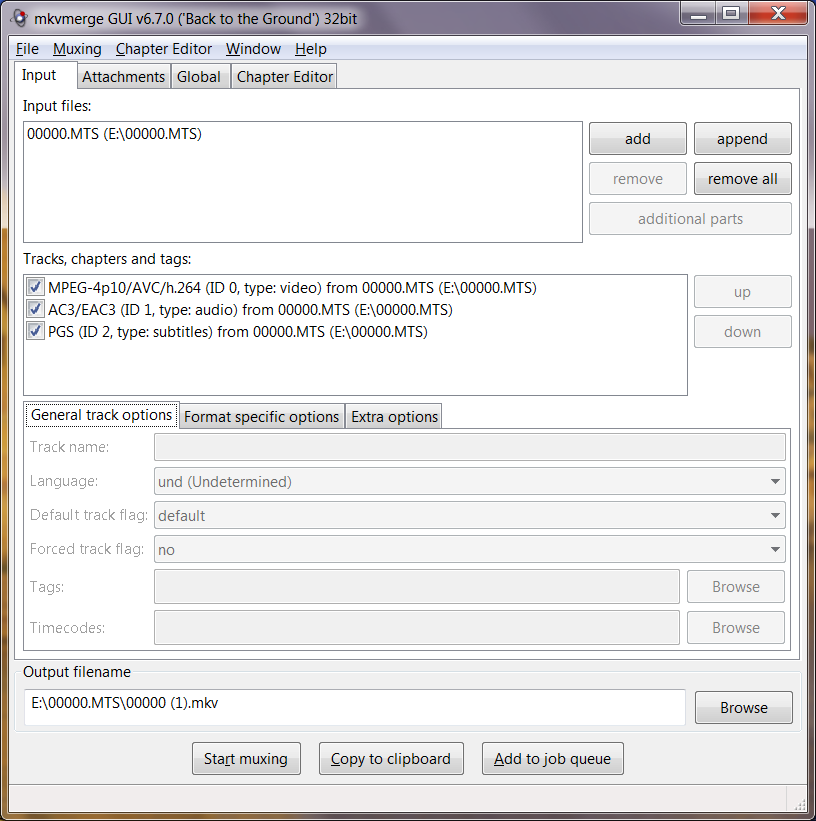 Convert .MKV to .MTS (AVCHD) for use in BD 35 Blu Ray player