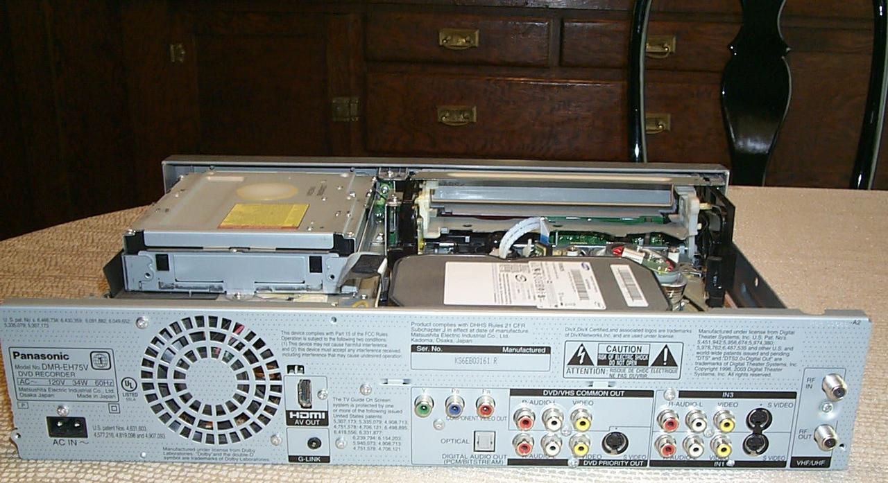Of course there are drawbacks, chief among them being the limitations of the built-in VCR. It is adequate: no more, no less performance than you would get from any random second-hand Panasonic 4-head hifi vcr you could pick up for $20. If your tapes are all high quality SP with no issues like generation loss or copy protection, the built-in EH-75v VCR is convenient. But if your tapes have any issues like noise or copy protection, the built-in VCR will be inadequate, requiring an external VCR with its own TBC/DNR and perhaps a black box device to filter the protection. The EH-75v was a one-of-a-kind Panasonic model pitched to a specific type of consumer: someone who expected to record TV on the hard drive, burn those recordings to DVD, and occasionally use the VCR to play a handful of VHS they might still have laying around the house. Like all combos, the EH75v built-in VCR was primarily intended to pacify wives/girlfriends/mothers who would not tolerate both the old VCR and a new DVD recorder cluttering their living rooms. The "tape dubbing" feature was a face-saving techie sop to the men who bought the things in an effort to keep household peace.