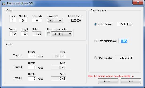 I downloaded Bitrate Calc ... and have input numbers .. is this correct ?