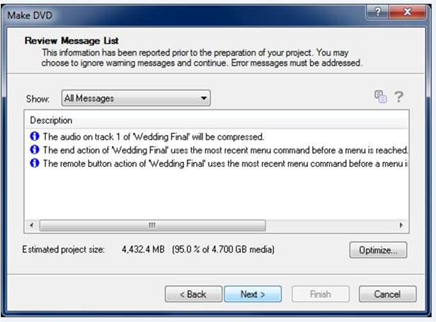 said "Do not let DVD Architect to optimize anything" ... which I thought you meant do not use the optimize button ? (my misunderstanding)
