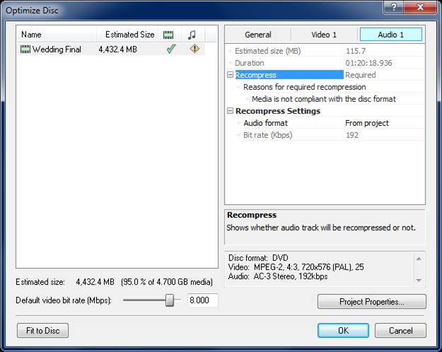 The issue is this should fit on a 4.7Gb DVD ... BitRate calc shows it at well under 4.7Gb .... in the pic below you can see that even DVD architect thiunks it will only be 4.5Gb (bottom right hand corner.: