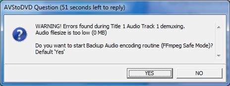 Yes that plays .... so seems to confirm the issue that my 'use' of AVStoDVS is not providing audio, error suggests initial codec fails, and it switches to backup.