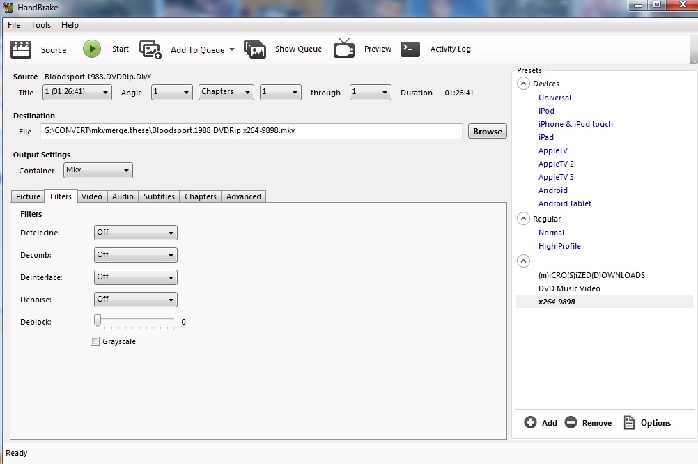 Mac - Handbrake: all x264 filters off? - MKV