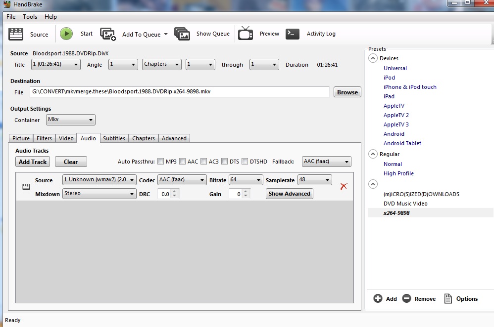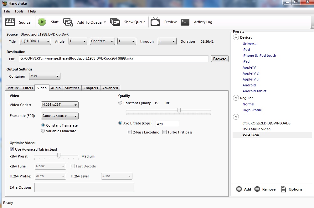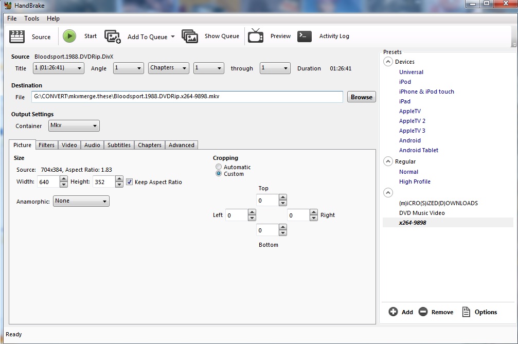 Handbrake question about converting x264 mkv to avi
