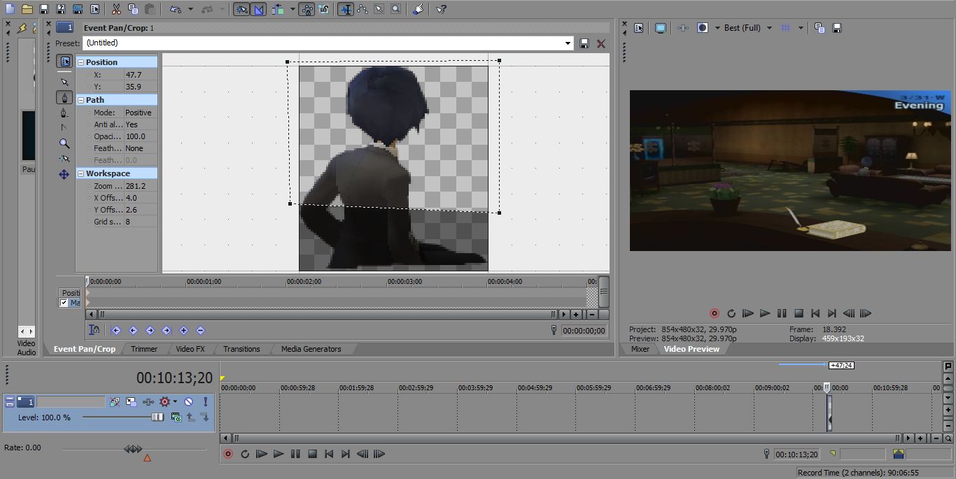 One question: The image that I'm using to overlay have a transparent background. In 'Video Event Pan/Crop' when I'm creating the anchor points, is it possible to display the video in the image's background? Or what alternative masking techniques I could use?