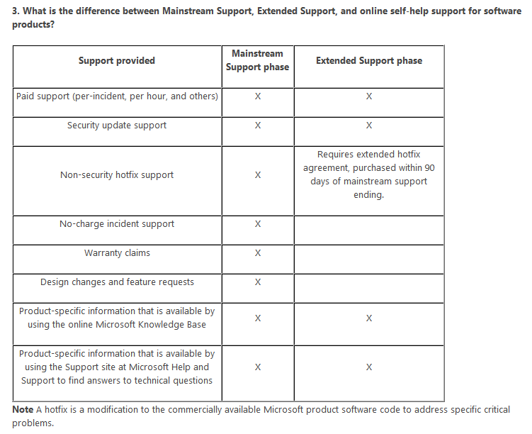 You're comparing two different things: Mainstream and Extended support. See the table under #3 in the Microsoft Support Lifecycle Policy FAQ: